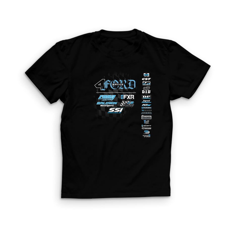 Be a part of the BF4 race team with the 2024 team shirt. This black shirt features a large front graphic and large back graphic.